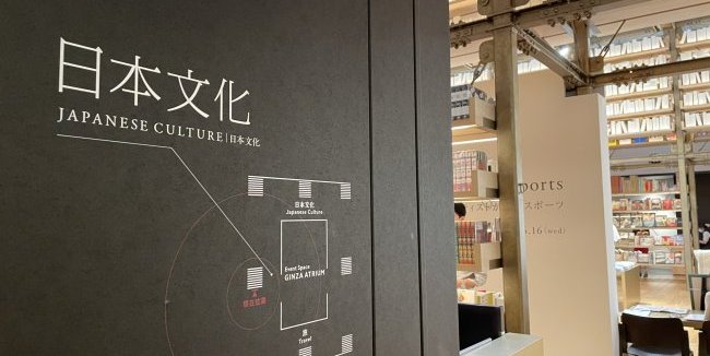 日本文化コーナーは「GINZA ATRIUM」というイベントスペースの周りをぐるりと取り囲んでいます。さっそくどんな本があるのか、見ていきましょう。