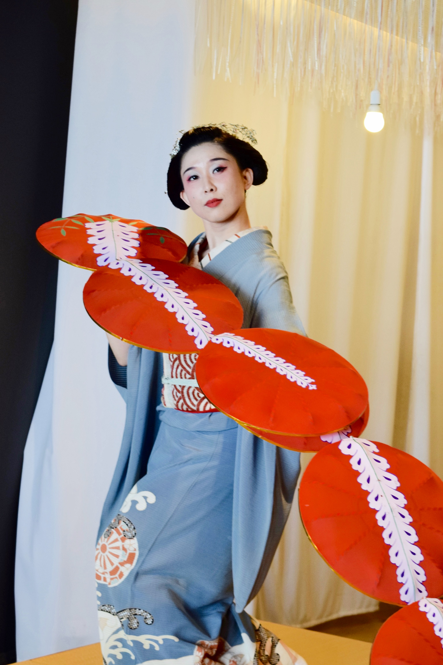 睦静紀さんは、ご自身が舞踊家やモデルとして活躍するだけではなく、お弟子さんたちにも報酬の出る舞台に出たり、海外で公演する機会を設けています。これは日本舞踊の世界では、とっても稀で貴重な経験です。