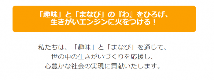 ”「趣味」と「まなび」の『わ』をひろげ、生きがいエンジンに火をつける!”を理念に、
