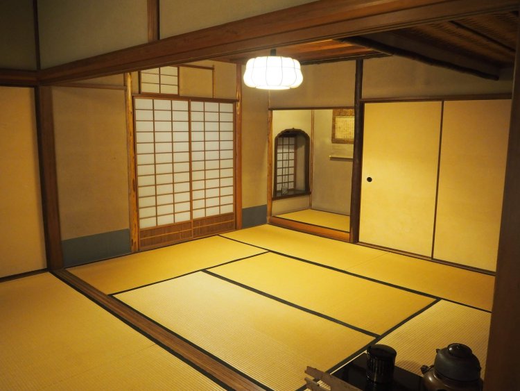 中に上がり、三畳間を抜けると一つ目の茶室「汲古庵(きゅうこあん)」があります。これは表千家八代目卒啄斎(そったくさい)の考案した七畳の茶室の写しだそうです。