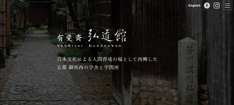 有斐斎弘道館とは・・・江戸中期、門弟3千人を有した、京都を代表する儒者・皆川淇園(みながわきえん)が創設した学問所。現在は公益財団法人として、季節の茶会や、能楽会、和菓子づくり講座などの催しを多数主催し、「日本文化による人間育成の場」として伝統文化を伝えています。「有斐斎」は皆川淇園の別号です。